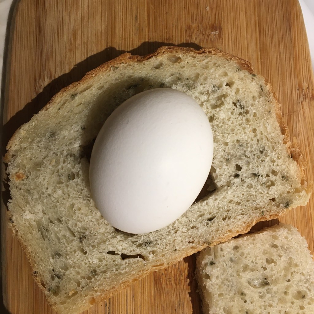 Moonstruck eggs! I haven had one or made one in almost 10 years. I’m pretty sure about that. My Nana is the first to ever make one for me that I can recall. And I loooved them. She was actually the queen of toast. I remember visiting my Nana when I was very young, she made toast for me once with wheat bread, honey, pistachios and banana. I was a very picky eater for my poor family to deal with, but Nana always made me something that had sustenance to it. She knew what I would like. Clever woman.